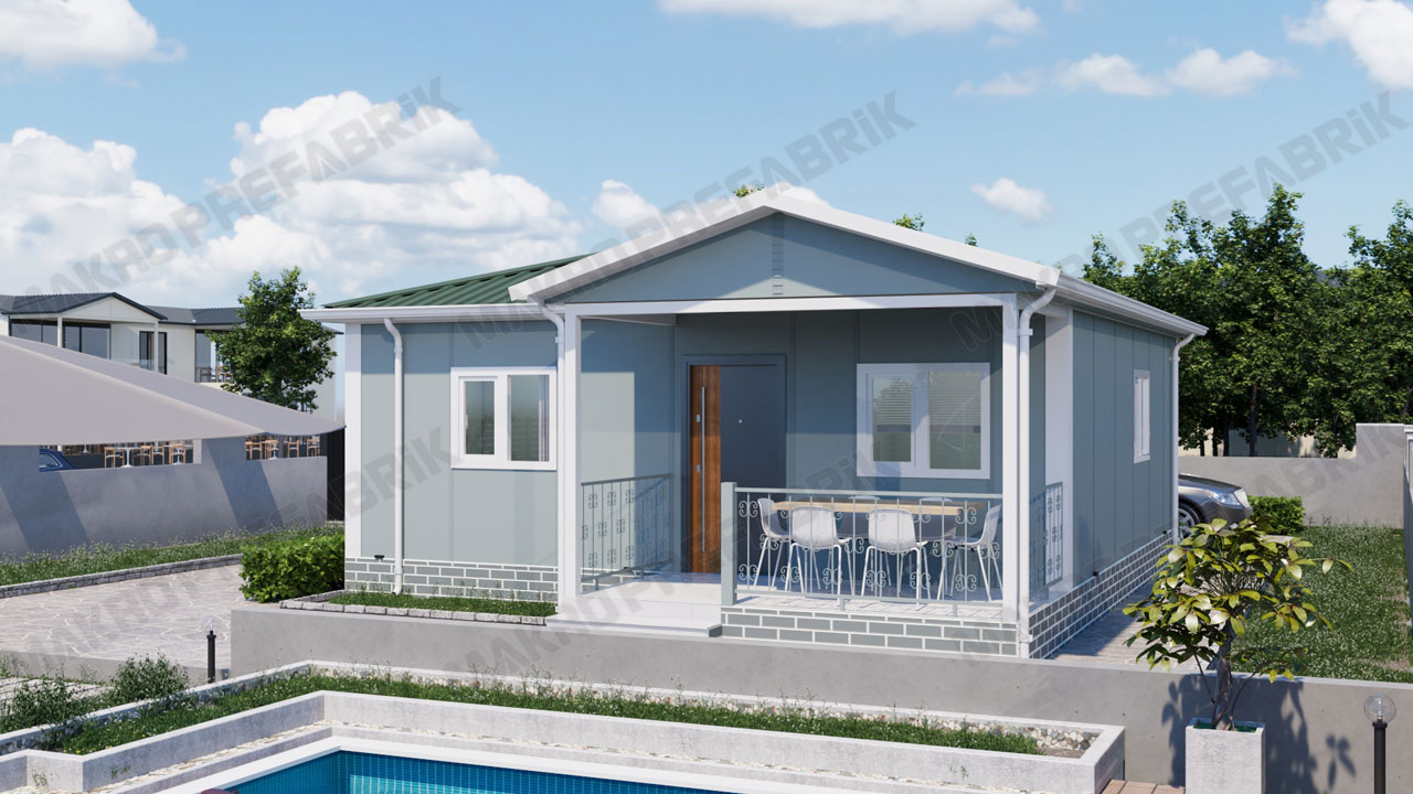 Makro Prefabrik prefabrik yapıları, yapılan uzun süren AR-GE çalışmaları sonucunda hem inşaat maliyetlerini azaltan hem de uluslararası standartlara uygun hale getirmiştir. 68 m2 tek katlı prefabrik ev modelimizin ön tarafındaki büyük ve geniş olan pencereler ile birlikte oldukça modern görünüme sahiptir. 6 m2 olan mutfak veranda penceresinden dışarıyı görür. Bir yandan müthiş yemeklerinizi hazırlarken bir yandan da pencereden dışarıdaki manzaranın tadını çıkarabilirsiniz. Bu müthiş yemekler bütün ev ahalisini mutfağa toplayacaktır. 19 m2 yaşam alanı sunan salonu ile orada biriktirebileceğiniz birçok anı olacaktır.