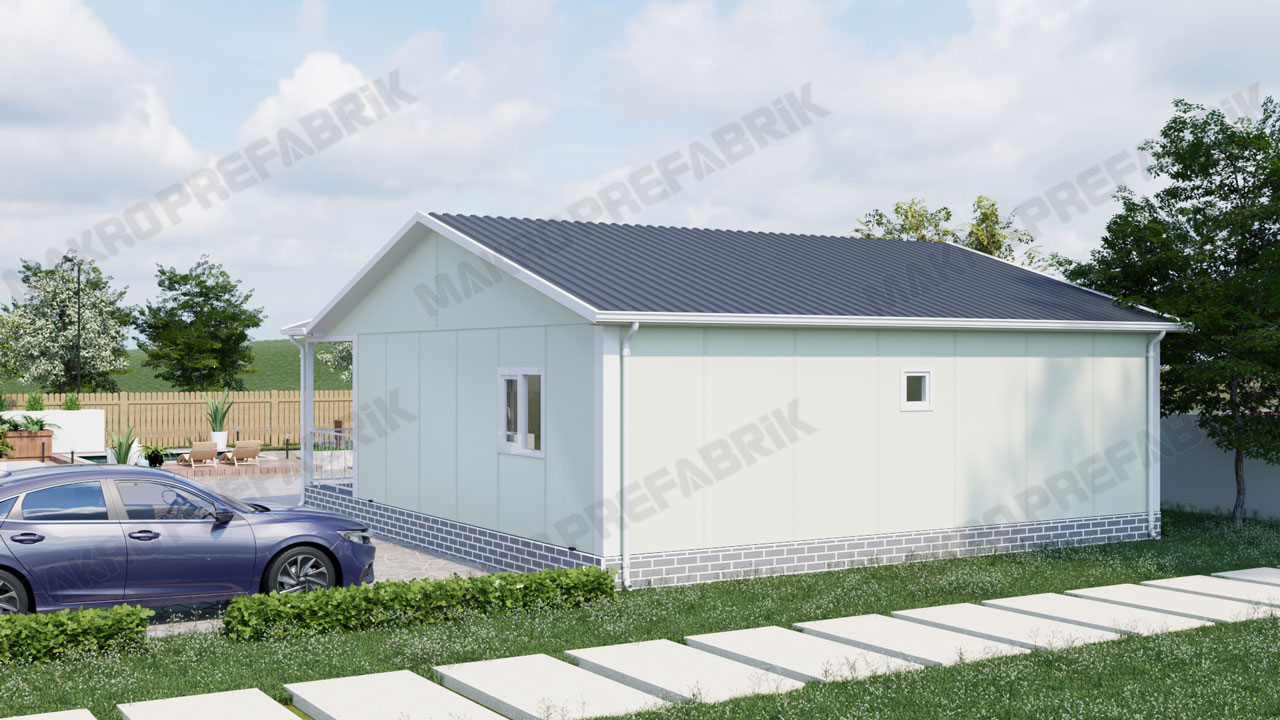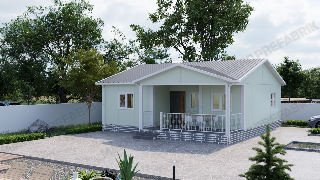 Bu açıdan bakıldığında 85 m2 prefabrik ev fiyatları da oldukça uygundur. Bu model büyük veranda isteyen kullanıcılar için oldukça uygundur. Öyle ki bu prefabrik ev modelimize girişler 14 m2 büyüklüğündeki verandaya ulaşım ile yapılmaktadır. Büyük bir verandaya sahip olma yanı sıra modelin ön cephesine tam üç adet büyük pencere konumlandırılmıştır. Bu sayede ön oyunda oyun oynayan çocuklarınızı rahat bir şekilde izleyebilirsiniz. Ayrıca verandadaki akraba birleşmelerini bir hayal edin.